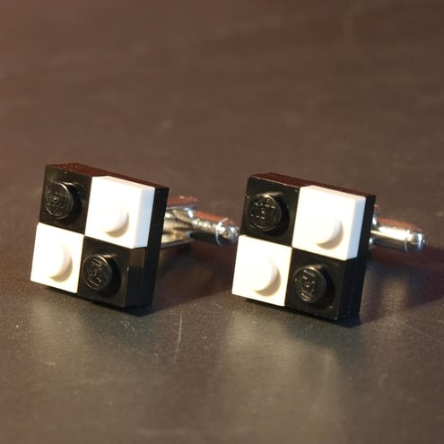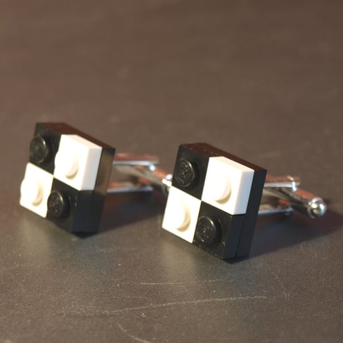 Cuff links made from blocks of LEGO® in a black and white check pattern. Relive your childhood with these cuff links, with memories of all the great creations you made from lego. Nostalgic, fun and sure to get a smile.