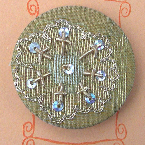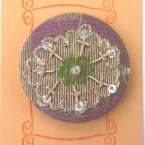 This brooch / pin is a real sparkler - with sequins and metallic fabrics and threads. There are 4 brooches available - just one in each of the colours shown.