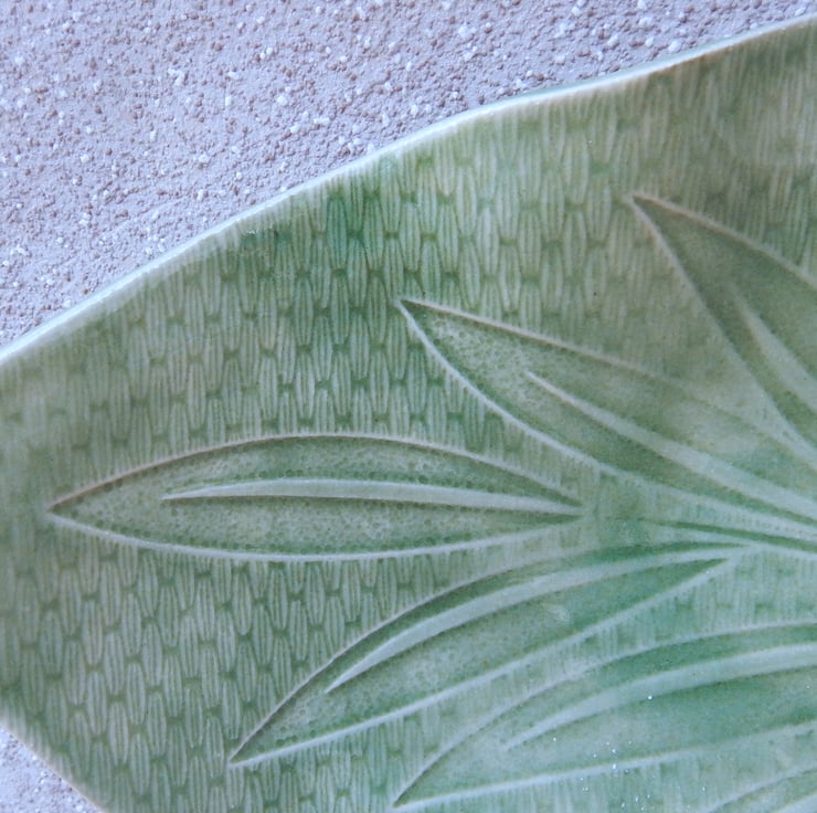 I have finished it with a lovely light green celadon glaze which nicely picks out the texture.