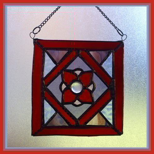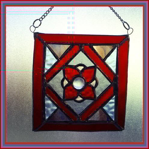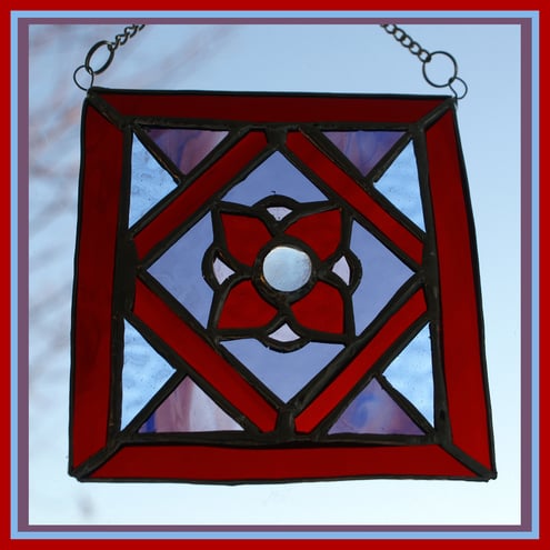 This is a unique stained glass suncatcher made using the Tiffany copper foil technique.