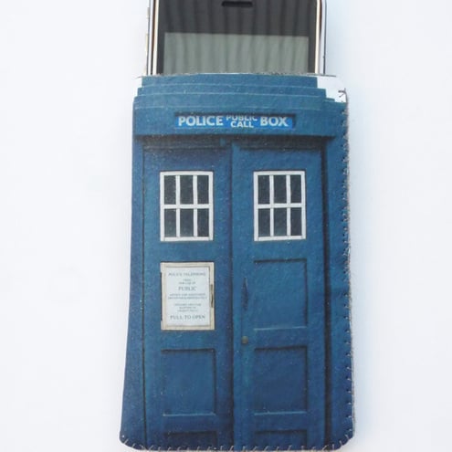 This British Police Box case is a great protection for your iPhone, iPod or any other smartphone. This iconic british police box is used as Tardis in Doctor Who series. Made from very durable, long-lasting and scratch-free felt with a thin fade-resistant coating on top it has a unique style and will last a lot longer than an ordinary felt case.