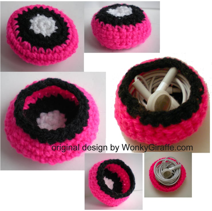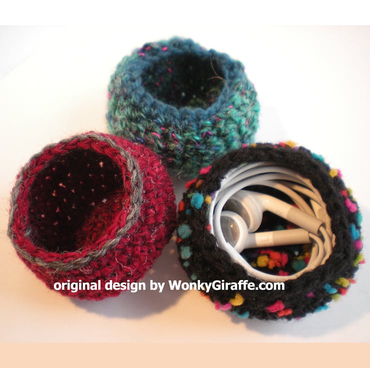 A Dinky crochet pouch, to keep those pesky earbuds tamed when they’re stored or in your bag.