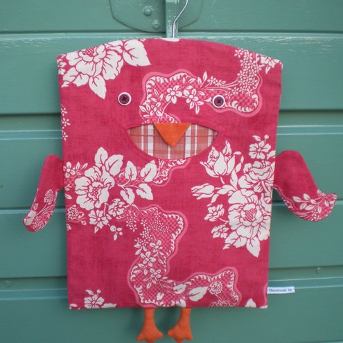 It has a removable (for washing) recycled wooden clothes hanger, with rotatable metal hook. Fabric is unused vintage (1980) Sheraton from Sanderson.