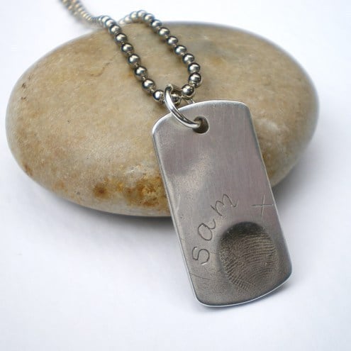Your loved one has left an impression on your heart, now carry that impression with you! A fine silver dog tag necklace with your loved ones fingerprint.
