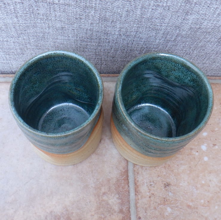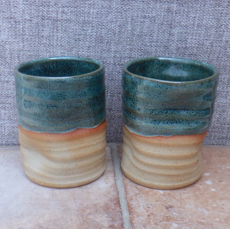 These beakers were wheelthrown by me using strong toasted stoneware clay.