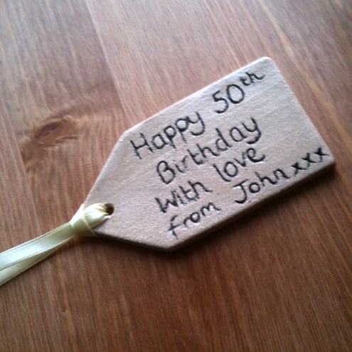 Handmade ceramic gift tag - ideal for attaching to presents to add that additional sentimental touch. Not only are these tags personalised gifts in themselves, they are also sentimental keep-sakes.