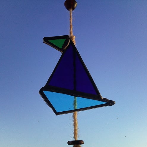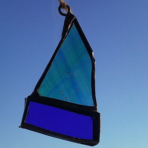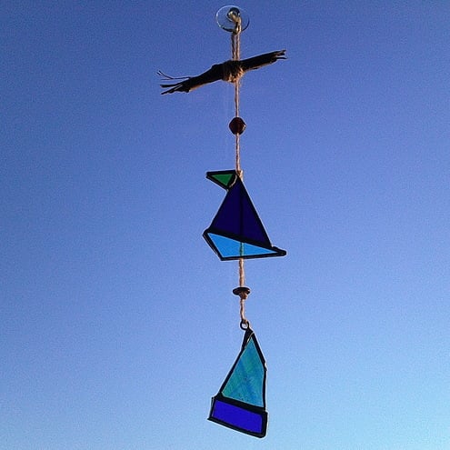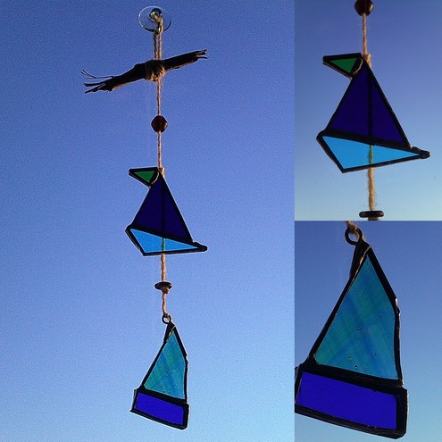 All the glass is recycled and the boats are constructed using the copper foil (Tiffany) technique. All my boat mobiles are total one offs.