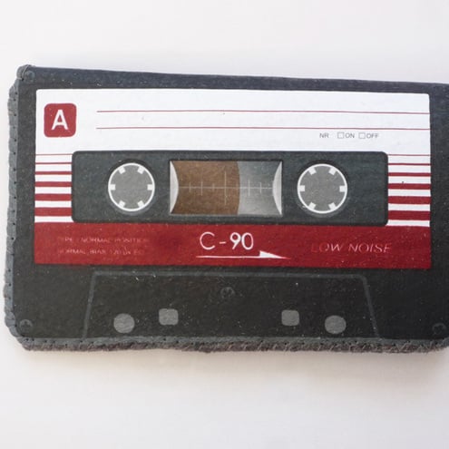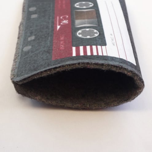 This red cassette tape case is a great protection for your iPhone, iPod or any other smartphone. You can title your tape yourself with a pen. Made from very durable, long-lasting and scratch-free felt with a thin fade-resistant coating on top it has a unique style and will last a lot longer than an ordinary felt case.