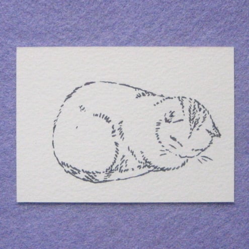 Heres a drawing, measuring 2.5 x 3.5, of little Dulcie sleeping. Drawn from life in ink on watercolour paper.
