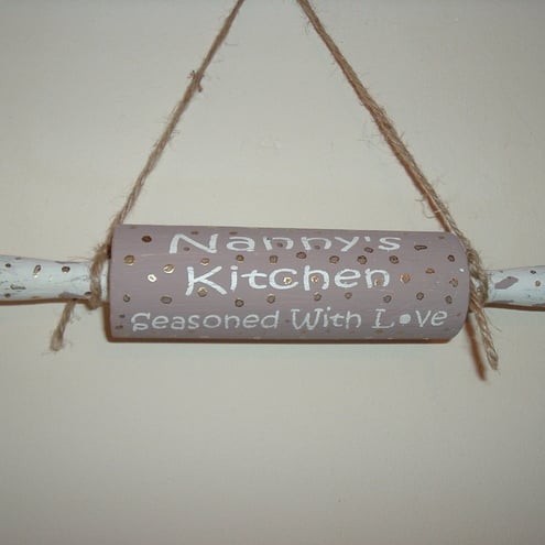 wooden personalised rolling pin, personalised name great stocking filler ready to hang with co ordinating jute approx 9 inch. many thanks