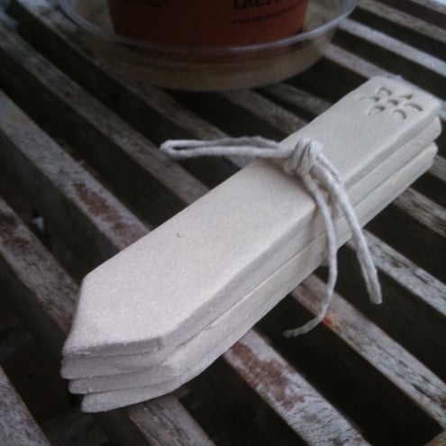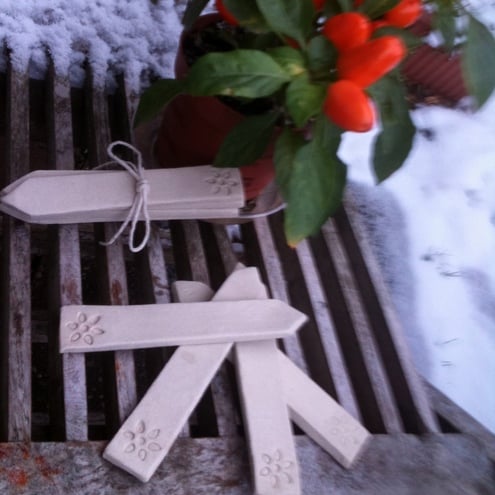 The name of the plant/herb can be written on these ceramic markers in pencil to enable them to be reused for another pot if required.