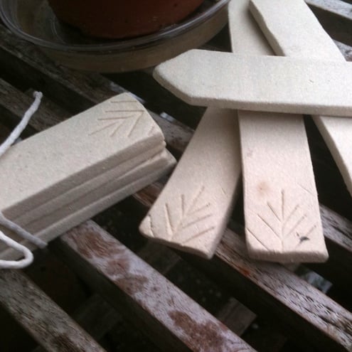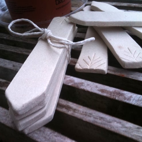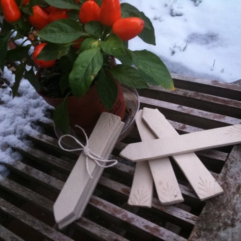 The name of the plant/herb can be written on these ceramic markers in pencil to enable them to be reused for another pot if required.
