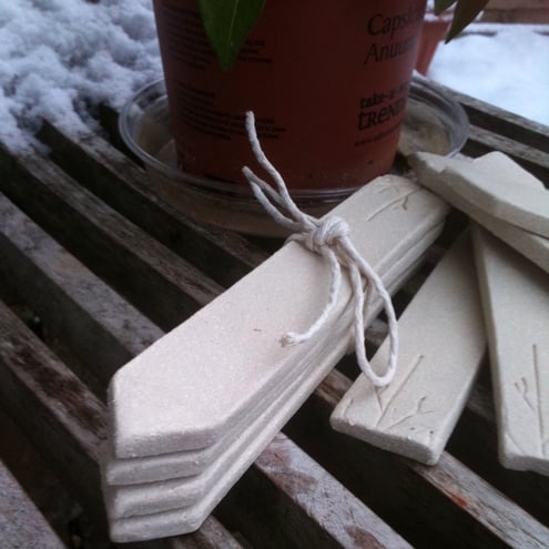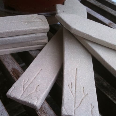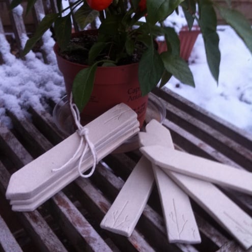 The name of the plant/herb can be written on these ceramic markers in pencil to enable them to be reused for another pot if required.