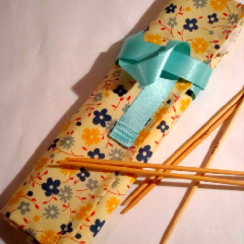 Each Case has enough pockets and plenty of room for your needles sizes, they also fold over the needles so they wont slip out. It rolls up and ties with a ribbon. Ribbon color may vary. Size: 10 inches long, 10 inches high with 7-9 needle slots.