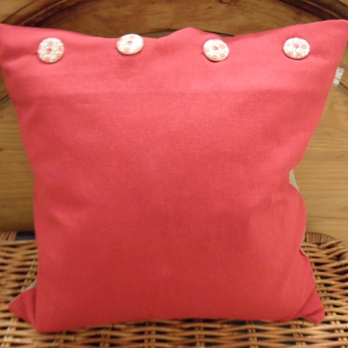 On the reverse gorgeous red fabric and 4 wooden red flower buttons.