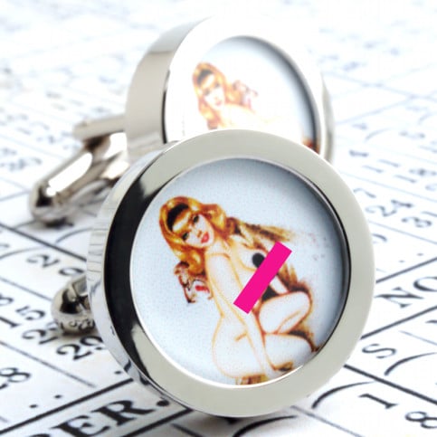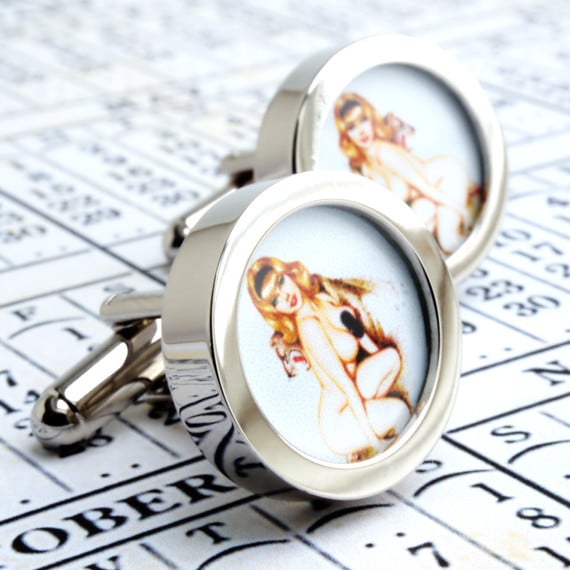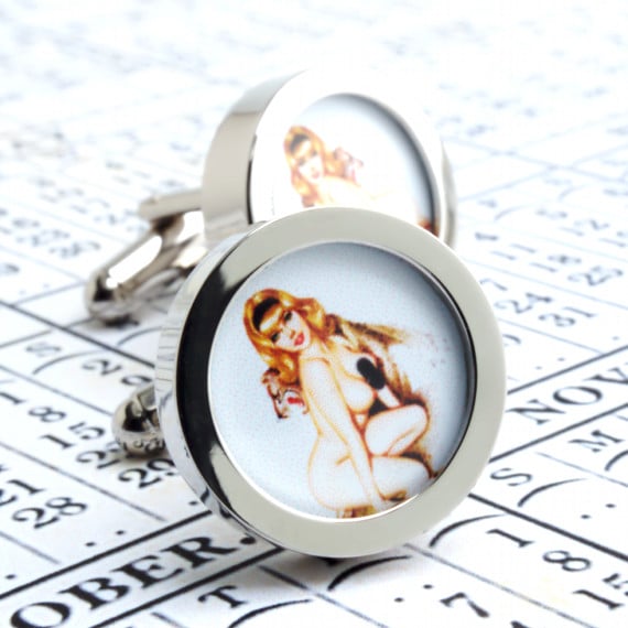 Naughty nude cuff links taken from a vintage pin up calendar. Lots of fun and guaranteed to get a smile.