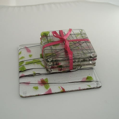 A set of four fantastic fused glass "Watermelon Ice" coasters from my "Ice" range.