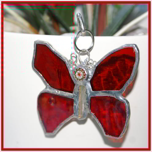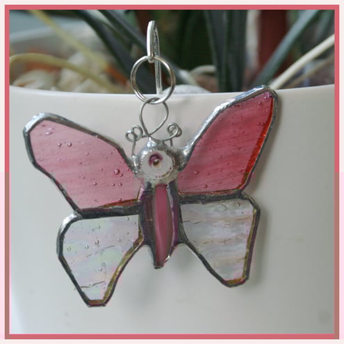 This is a stained glass decoration entirely hand-crafted using the Tiffany copper foil technique.