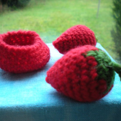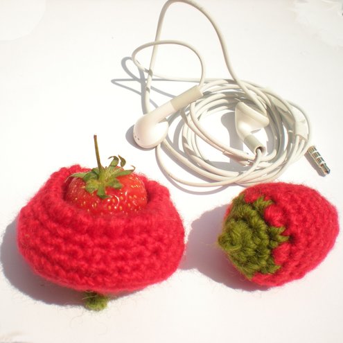 There is a separate pattern for the strawberry earbud cosy nest pod.