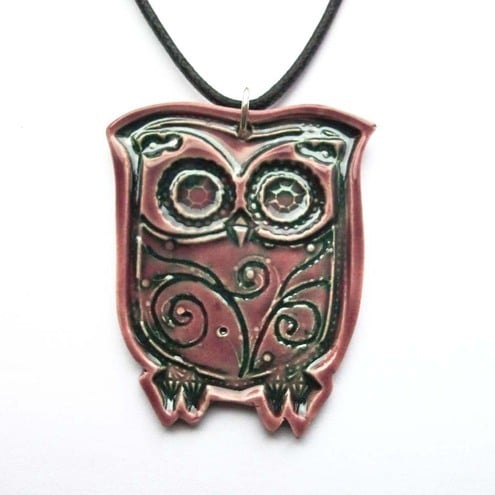 This cute little owl is made from white earthenware clay, fired once then decorated with oxides, glaze and re-fired.