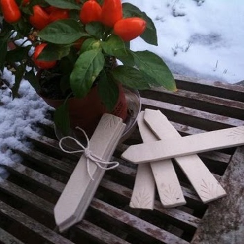 Each set of 4 comes tied together with rustic string. The name of the plant/herb can be written on these ceramic markers in pencil to enable them to be reused for another pot if required.