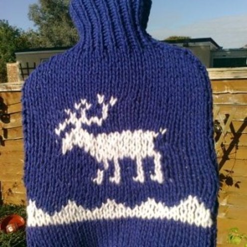 Stay warm this winter with this elegant hot water bottle cover. This blue/purple cover has a nordic feel with its elk, reindeer design which adds an air of cosy and warm. Now your toes never need go cold.