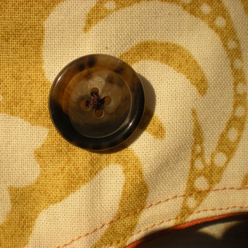 Heavy duty vintage cotton fabric ( “Sanderson country dance”; not new but never used ) Double stitched seams. Strong vintage wooden hanger.