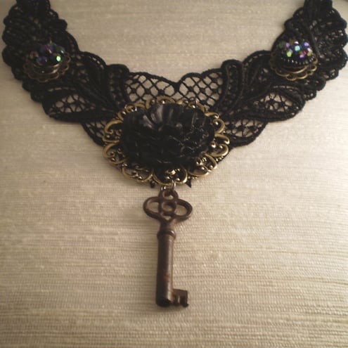 And finally ...a vintage decorative key adds drama. The vintage triple link chain with a flower toggle clasp finishes the necklace perfectly.