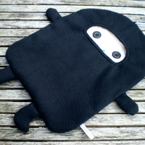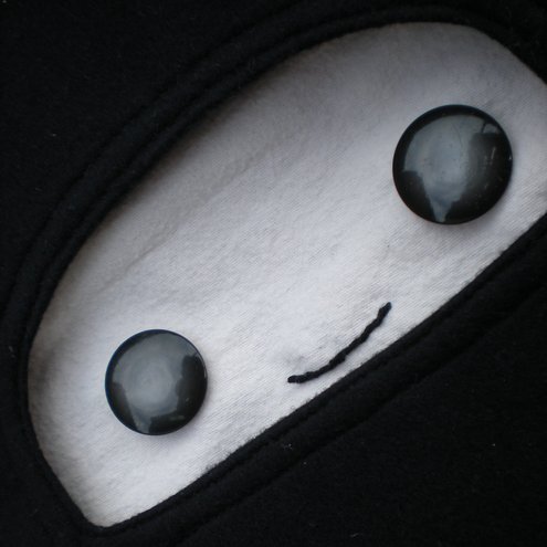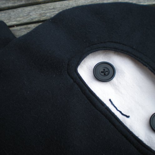 Speaking of which I can custom one with a choice of eyes; with matching or different on either face, in felt or buttons of your colour choice- blue, brown, grey, green or even more black.