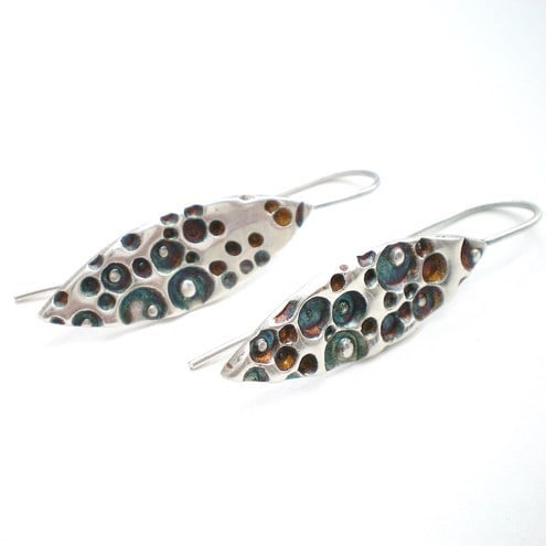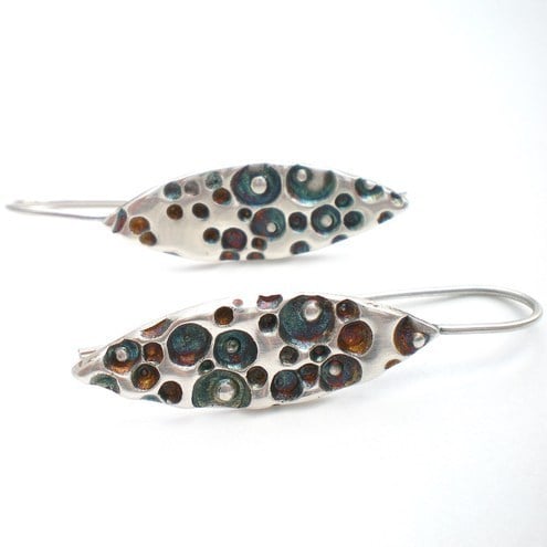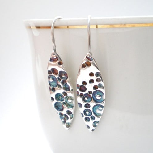 They have a beautiful gorgeous purple, blue, bronze and green patina which is deep set within the coral texture and the remaining silver surface has been polished to a soft shine. The texture really stands out beautifully!