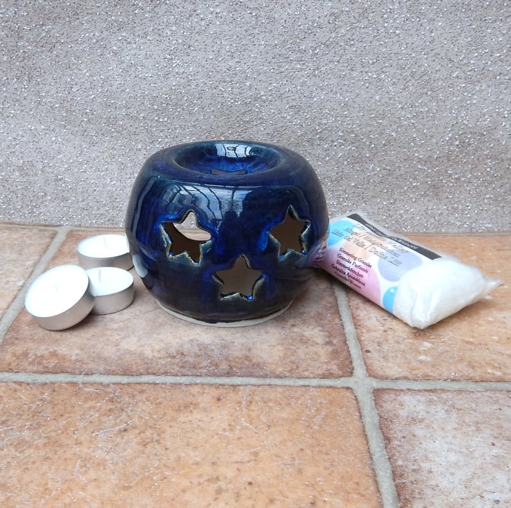 Oil burner set wheel thrown in stoneware with melting granules ceramic star