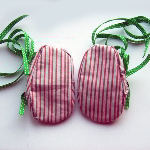 Handmade baby girl shoes, ballerina style in pinky stripes.
