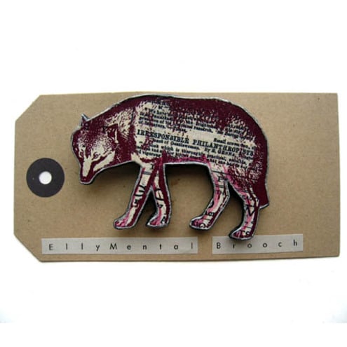 EllyMental vintage styled kitsch jewellery is designed and made by Elly who is inspired by designs based on her own fervent interest in kitsch nostalgia and animals (!). She incorporates her designs with found ephemera and delicate home-made papers. Items are multi-layered and multi-varnished to create a strong and robust end piece. All items are lovingly and meticulously hand crafted.
