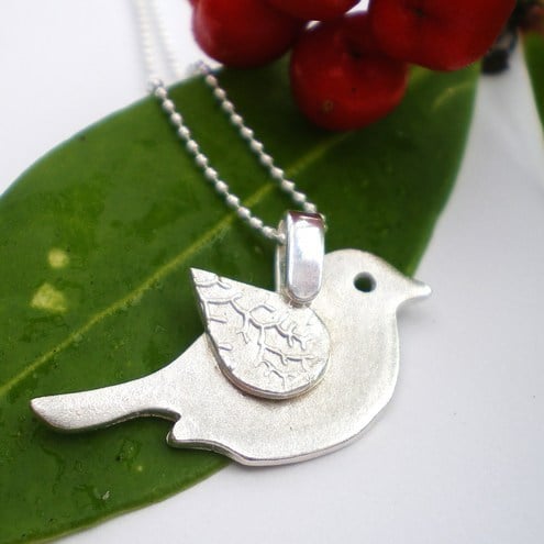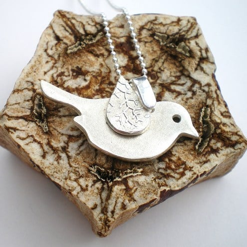 This pendant is just so cute and perfect for winter. I hand crafted this tiny little bird from fine silver and then gave him a beautiful little textured wing!