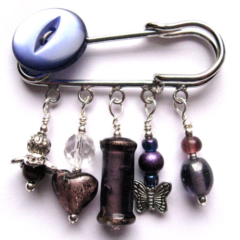 Luscious handmade Rainbow Pin in gorgeous shades of purple and violet. This one looks good enough to eat! (not recommended...) Silver foil lined amethyst glass heart, faceted Czech glass, a cute little flower, and various other bits & bobs including a big purple button salvaged from a vintage cardi! These little pins are just so versatile! You can use them to cheer up a plain outfit, fasten a scarf, adorn a bag... Pin measures just over 2" from end to end.Your pin will be lovingly wrapped in tissue and a suedette gift pouch, then carefully packaged to ensure a safe delivery.