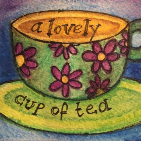 This is a tiny little ACEO original watercolor painting of a lovely cup of tea.