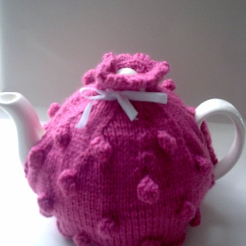 I love designing new takes on the old vintage tea cosy's. This one features bobbles, and has a draw string top. It is designed and hand knitted by me in England.