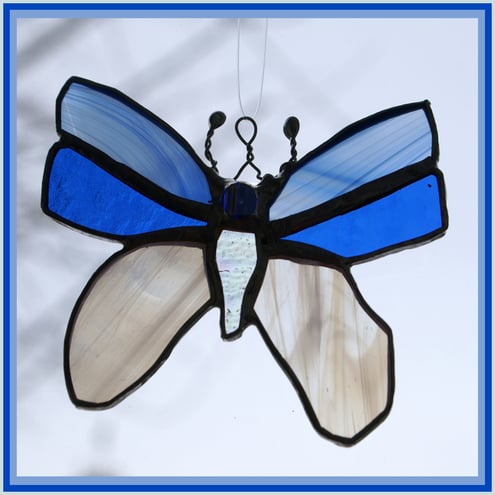 This is a stained glass suncatcher made using the Tiffany copper foil technique.