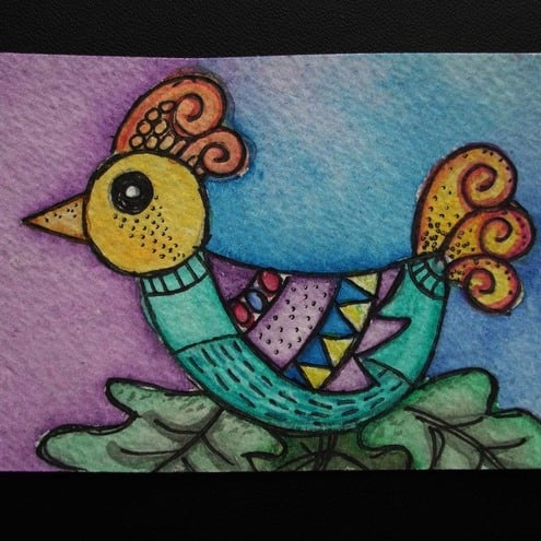 This is a tiny little ACEO original watercolor painting of a gorgeous, colourful bird.
