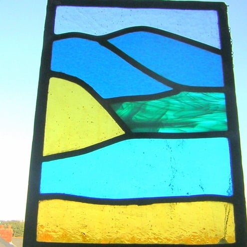 This is part of my current North Devon Coast Series, created from sketches I made earlier this year. This panel is made using traditional leading techniques.
