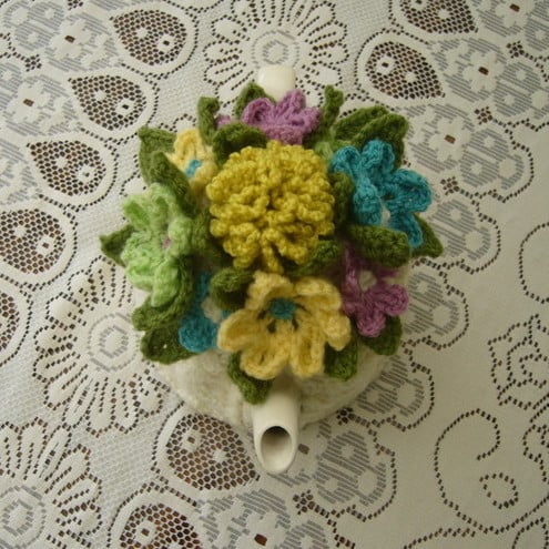 Crochet Tea Cosy/Cosie/Cozy Cream with flowers (Made to order)