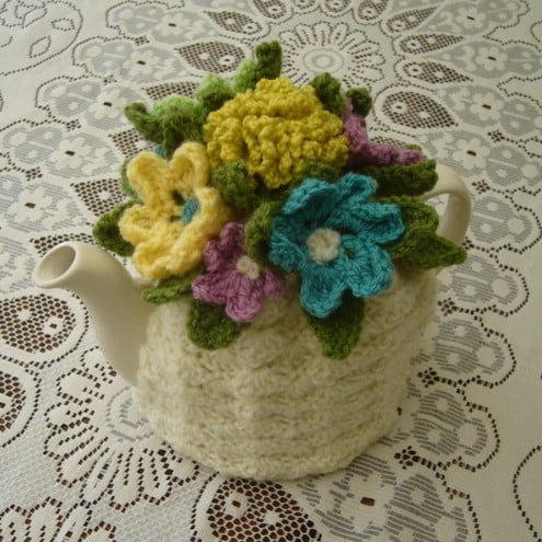Crochet Tea Cosy/Cosie/Cozy - Cream with flowers (Made to order)