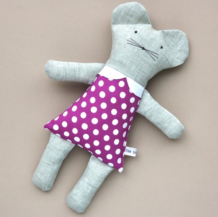 Pale green linen mouse, with polyester filling and embroidered face.
