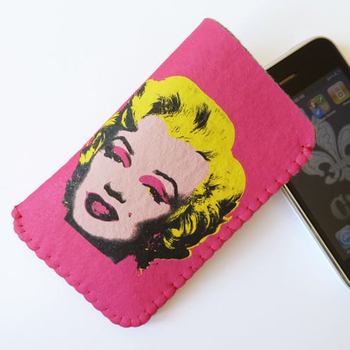 This Marilyn Monroe case is a great protection for your iPhone 5, iPhone 4S, iPod or any other smartphone. Made from very durable, long-lasting and scratch-free felt with a thin fade-resistant coating on top it has a unique style and will last a lot longer than an ordinary felt case.