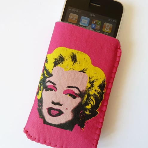This Marilyn Monroe case is a great protection for your iPhone 5, iPhone 4S, iPod or any other smartphone. Made from very durable, long-lasting and scratch-free felt with a thin fade-resistant coating on top it has a unique style and will last a lot longer than an ordinary felt case.