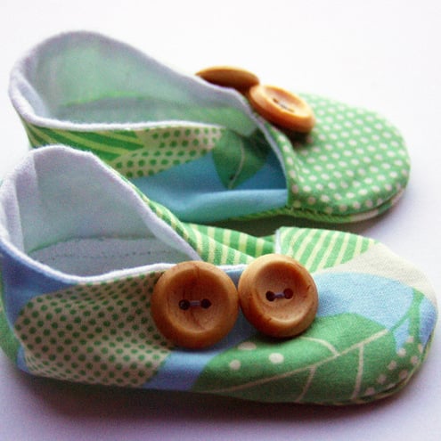 Gorgeous little Baby Booties made from Designer Amy Butler Fabric with a soft white lining to make them extra cosy for your little one.