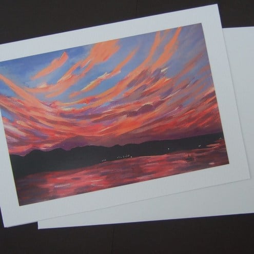 A 6" X 4" print on a 7" x 5" quality cream card with envelope and in a clear packet.