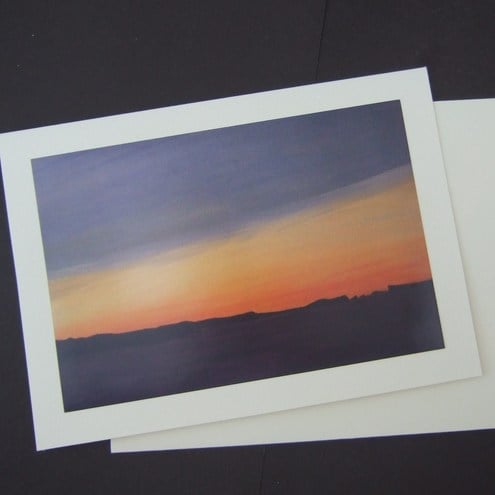 A 6" X 4" print on a 7" x 5" quality cream card with envelope and in a clear packet.
