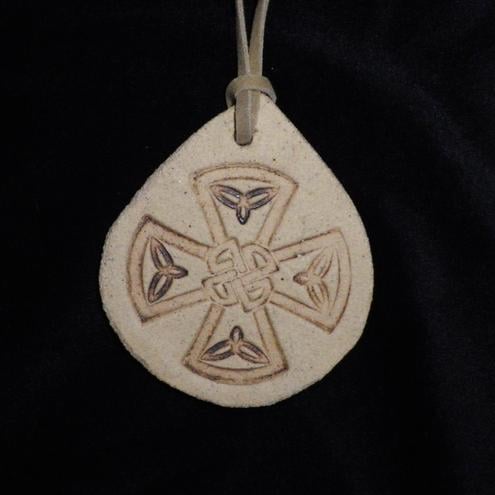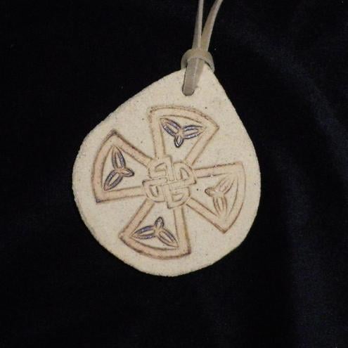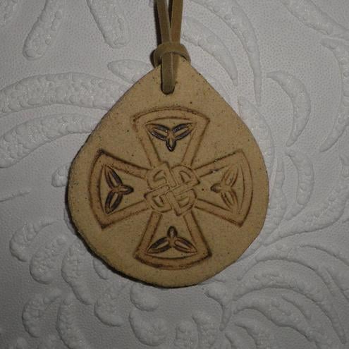 I made this pendant out of a piece of rolled out sandstone clay which I have impressed with a celtic cross design.