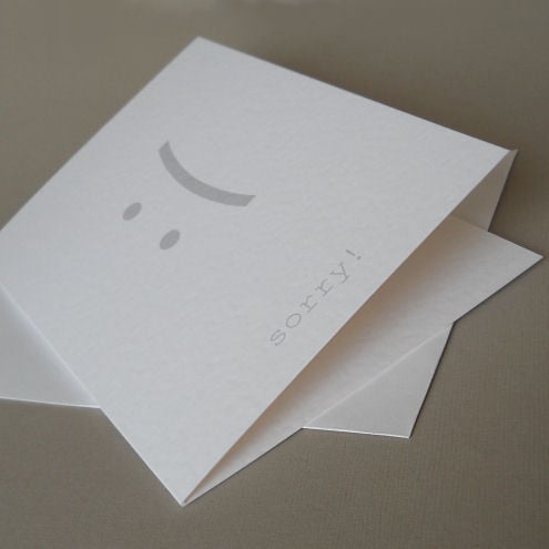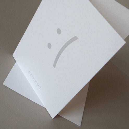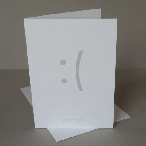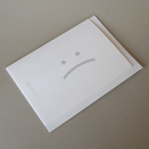 at the bottom of the card, the message reads: "sorry!"